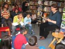Vorlesenachmittag mit Julia Boehme ein voller Erfolg Nach der Veranstaltung beantwortete die Autorin geduldig alle Fragen ihrer kleinen Zuhörer und signierte einige Bücher. Die kleine Michelle, gerade an diesem Tag zum zehnten Mal bei einer Lesewelt-Vorlesestunde, suchte sich als Buchgeschenk ‚Conni auf dem Reiterhof‘ aus und ließ es gleich signieren. Julia Boehme, selbst ein großer Fan von Lesewelt Berlin e.V., unterstützt den Verein schon seit längerem, nicht nur durch Autorenlesungen sondern auch durch ihre großzügigen Buchspenden. Lesewelt Berlin e.V. bedankt sich ganz herzlich bei allen kleinen und großen Zuhörern und vor allem bei Julia Boehme für diesen schönen Nachmittag! | ![]() Julia Boehme vor ihren kleinen Zuhörern |