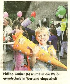 Presseberichte zur Lesewelt-Schultütenaktion 2010 Zudem sind die kleinen Lesewelt-ABC-Schützen auch in anderen Berichten aufgetaucht. So hatte Philipp seine selbstgestaltete Schultüte, die er sich in der Ingeborg-Bachmann-Bibliothek ‘erlesen’ hatte, mit zur Einschulung genommen und wurde direkt fotografiert. | ![]() Ein Foto aus der Berliner Morgenpost im Rahmen eines Artikels zur Einschulung |