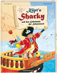Alle drei Bände haben großformatige, meist doppelseitige ansprechende Bilder, die flächig angelegt und in kräftigen Farben gehalten sind. In den Bildern lassen sich viele Seltsamkeiten entdecken, was Anlaß zu Erstaunen und Lachen gibt. Der Text nimmt meist weniger als ein Viertel einer Doppelseite ein. Die Sätze sind in der Regel kurz, manchmal bestückt mit milden Kraftausdrücken, wie sie nun einmal zu einem Piraten gehören, was den Jungen Freude machen wird. Wo es um nautische Bezüge geht, benutzt Käpt’n Sharky die seemännische Fachsprache.