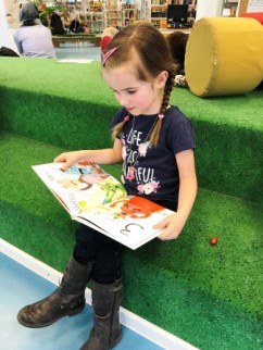 Laureta, die jeden Dienstag die Lesewelt-Vorlesestunde in der Ingeborg Drewitz-Bibliothek in Steglitz besucht, hat nach ihrem zehnten Besuch das Buch „Das schrecklichste Monster der Welt“ von Lesewelt Berlin e.V. geschenkt bekommen. Die Mutter hat sich mit einem Foto bedankt und Lesewelt Berlin bedankt sich beim Moritz Verlag für die großzügige Buchspende.